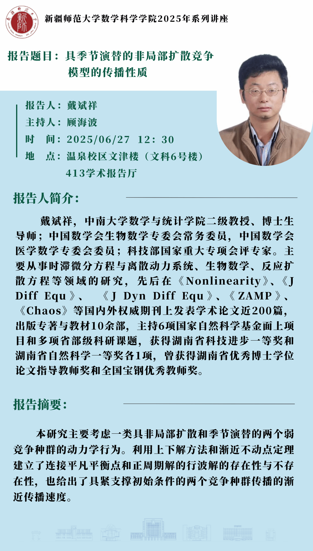 下一条:2025系列学术讲座预告:具有季节性繁殖和恐惧效应的捕食被捕食反应扩散模型的图灵模式