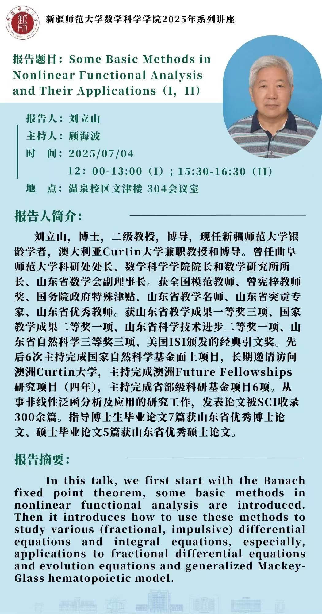 上一条:2025系列学术讲座预告:Averaging Principle of Stochastic delay and Functional Differential Equation with Two-time Scales